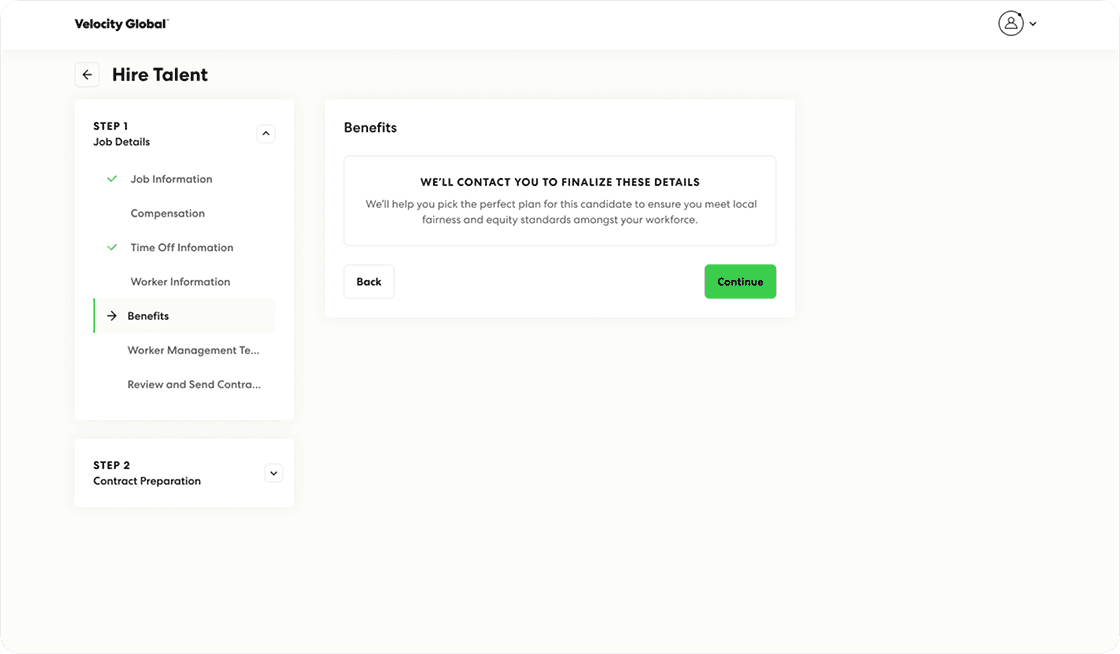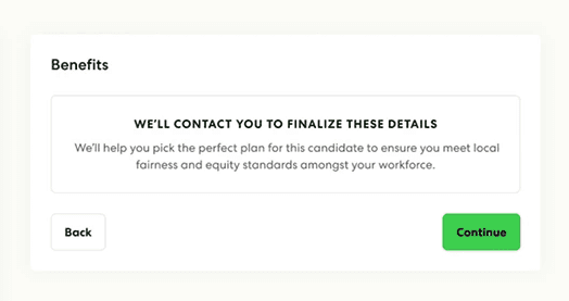 Before launch, benefits selection ended with “We’ll contact you to finalize these details.”